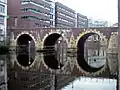 Bridges across the Este in Hamburg; only 2 km (1.2 mi) of the Este's total of 62 km (39 mi) lie within the state borders of Hamburg.