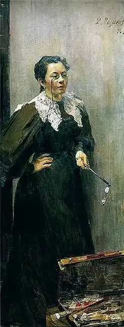 Stage actress, Imperial Theatres. Originally buried in the Smolensky Cemetery, transferred to the Tikhvin in 1936. Monument bust destroyed by bomb in 1943 during the siege of Leningrad. Replaced with a copy in 1955.
