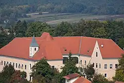 The Baroque-Classicist castle of the Pejačević family in Retfala, built in the first phase in 1801, It was built in the shape of the letter U, surrounded by a large park, which today has been completely reduced and reduced to a neglected environment. Not far from the castle, the family also built a mausoleum in 1891, in the neo-Baroque style, designed by architect Viktor Siedek, and it is considered one of the highest quality examples of neo-Baroque architecture in Croatia.[11] |