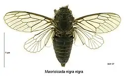 - Maoricicada nigra nigra (Myers, 1921), Western Subnival Cicada