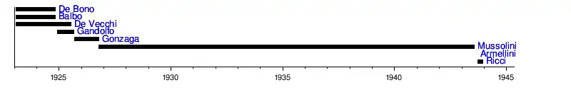 - ^ Scaffei, Elvira Valleri, ed. (1987). "De Bono, Emilio". Treccani. Dizionario Biografico degli Italiani (in Italian). Vol. 33. Retrieved 10 December 2022.