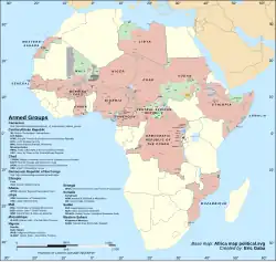 This is a list of conflicts in Africa arranged by country, both on the continent and associated islands, including wars between African nations, civil wars, and wars involving non-African nations that took place within Africa. It encompasses pre-colonial wars, colonial wars, wars of independence, secessionist and separatist conflicts, major episodes of national violence (riots, massacres, etc.), and global conflicts in which Africa was a theatre of war.