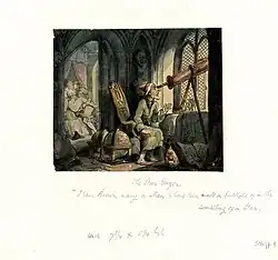 ————[c] Interior. A very fat, gouty old man sits before the fire, writhing with pain, while a young couple are in the act in the adjoining room, of which the door is open; an old woman enters by a door at the further end of the back room, and seems much surprised. There is a cat in the immediate foreground. "The drawing and finish are pretty good."[23]