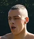 A butch is a type of haircut in which the hair on the top of the head is cut short in every dimension. The top and the upper portion of the back and sides are cut the same length, which generally ranges between 5 millimeters (.25 in) and 20 millimetres (.75 in), following the contour of the head. The hair below the upper portion of the sides and back of the head is tapered short or semi-short with a clipper, in the same manner as a crew cut. |