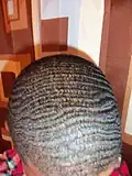 A hairstyle originating from Sub-Saharan Africa, popularized by African Americans wherein the hair is braided into a series of locks that cling to the head. |