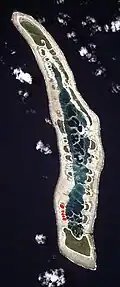 | Reef-Flat Islet | 1,000 m2 | This strip of coral rubble rises above the reef flats to a size of only 20 m by 60 m; with only three plant species observed; no birds have been sighted on the islet. | ||