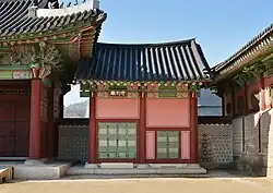 The hall was a new addition during the Gojong-era reconstsruction.[102] After the 1917 Changdeokgung fire, it was disassembled and moved to Changdeokgung.[82][35] It is not known how the building was used.[102] |
