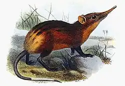 Often called sengis, the elephant shrews or jumping shrews are native to southern Africa. Their common English name derives from their elongated flexible snout and their resemblance to the true shrews.
