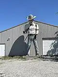 • "Ranch Cowboy" stands guard with a pitchfork at Lazy T Ranch, 12765 N. 63rd St., Longmont.[7]