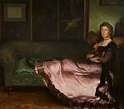 Lady on a Couch (Elizabeth Ann Ferrier, 1844–1917) | 1900 | oil on canvas | 80 cm x 89 cm | Leicester Museum & Art Gallery[12] |