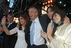 - Néstor Kirchner (1950–2010), First Gentleman of Argentina (2007–2010), National Deputy (2009–2010), President of Argentina (2003–2007), Governor of Santa Cruz (1991–2003), Mayor of Río Gallegos (1987–1991). Co-founder of the Front for Victory. Brother of Alicia Kirchner and husband of Cristina Fernández de Kirchner.