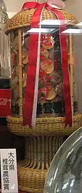 - ^ Oita Shiitake Mushroom Agricultural Cooperative Official Account [@Oita_Shiitake] (25 October 2021). "Beasily stuffed with dried shiitake mushrooms. It is time to produce the victory cups to be presented to the winning wrestlers of the Kyushu Grand Sumo Tournament again this year. Specialist staff carefully pack the cups one by one. The total weight is a whopping 21 kg (46 lb). This is a tradition that has continued for 42 years since 1979" (Tweet) (in Japanese). Retrieved 12 May 2023 – via Twitter.