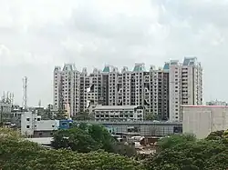 Unlike other metropolitan cities in the country, Chennai continues to experience a horizontal growth (that is, expanding continuously in its area) rather than a vertical growth by means of building more skyscrapers, owing to the presence of weather radar at the Chennai Port, which prohibits construction of taller buildings beyond its permissible limits.[2] The maximum permissible building height in Chennai was limited to 40 m until 1998, when it was increased to 60 m.[3][4][5] This restriction continued until the second master plan of the Chennai Metropolitan Development Authority was rolled out in 2008, after which the restriction was lifted, allowing buildings taller than 60 meters to be built.[6][7] Until then, the LIC Building on Anna Salai, with 15 floors, dominated the city's skyline for almost four decades. Even the next tallest building, a 10-storied residential tower of the Tamil Nadu Housing Board (TNHB) at Nandanam, was not built until almost a decade later in 1968.[8] However, after the big companies started building tall concrete structures in the city in the first and second decades of the twenty-first century, the skyline started changing, especially along the periphery,[9] and more so in south Chennai along the Old Mahabalipuram Road, Egattur, Perumbakkam, and the East Coast Road.[7] According to realty portal Commonfloor.com, as of 2014, there were 96 high-rises (buildings with 10 or more storeys) and 148 buildings under construction or planned.[7]