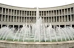 Esposizione Universale Roma (EUR) Business, public and residential district Notably mid-20th century Fascist, late-neoclassical and modernist architecture Intended to be the district to host Rome's Universal Exposition, which in the end, never occurred, it was built by Benito Mussolini in the 1930s and '40s, and used to be called the E42. It is often considered one of the best examples of planned Fascist architecture, and is often considered one of the most serene and livable quarters of the city, yet its austere architecture has often arisen to much controversy.