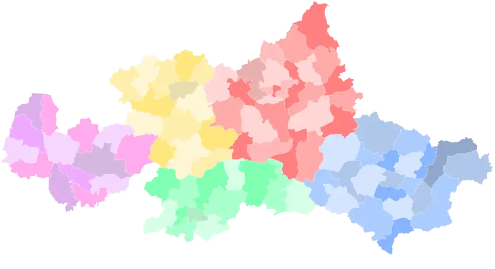 • Huangshanguan (黄山馆镇), Beima (北马镇), Lutou (芦头镇), Xiadingjia (下丁家镇), Qijia (七甲镇), Shiliang (石良镇), Langao (兰高镇), Zhuyouguan (诸由观镇)