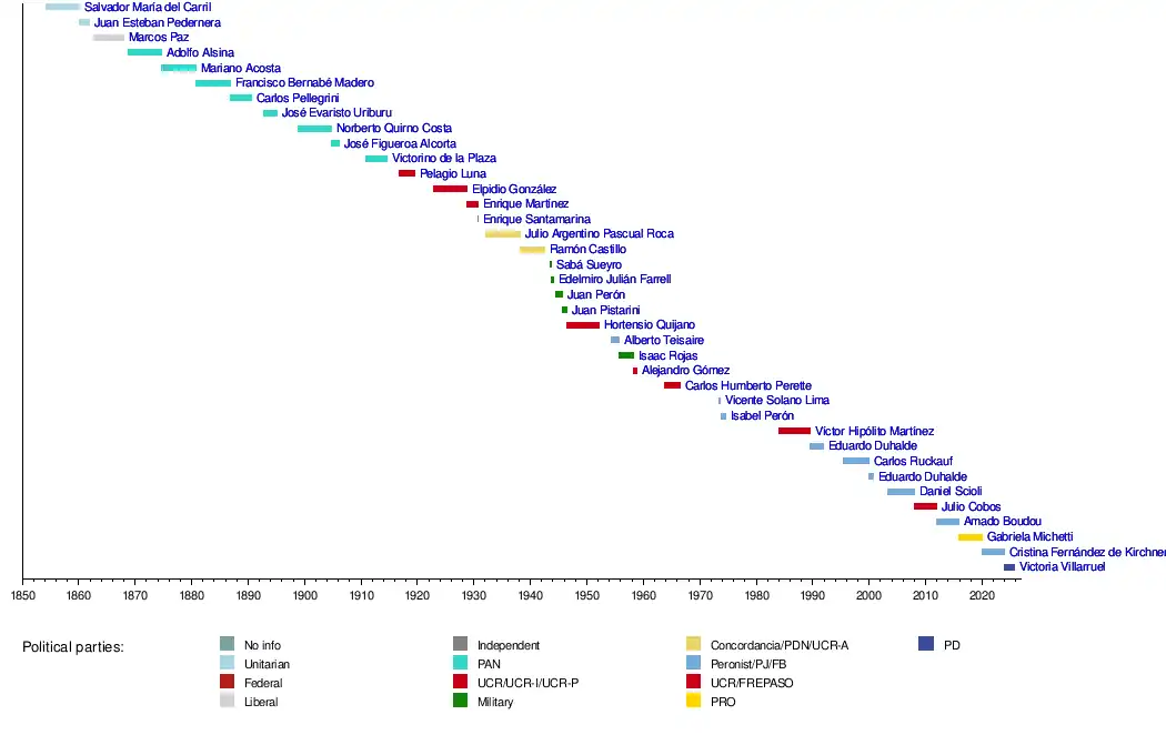 12 October 1892 | 22 January 1895 | 1892 | PAN | Luis Sáenz Peña | Assumed the presidency after the resignation of Luis Sáenz Peña. | |