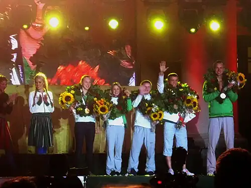 1. ^ Lietuvos delegacijos vėliavą Londono olimpiados atidaryme neš V.Alekna