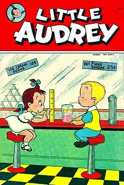 Little Audrey (full name: Audrey Smith) is a fictional animated cartoon character, appearing in early 20th century comics[1] prior to starring in a series of Paramount Pictures' Famous Studios cartoons from 1947 to 1958.[2] She was devised after Paramount decided not to renew the license on Little Lulu, the comic strip character created by Marjorie Henderson Buell (a.k.a. "Marge").