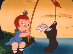 In common with many animated shorts of the period, childlike fantasy played an important role in Audrey's early cartoons, which often used dream sequences as the basis of the storylines. In this way, Audrey could attend a wedding in Cakeland (Tarts and Flowers, 1950), ride the clouds with Mother Goose (Goofy Goofy Gander, also 1950), or face an underwater tribunal of outraged catfish (The Seapreme Court, 1954). Slapstick crept into the series with Surf Bored (1953), which pitted the precocious Audrey against a hulking but ultimately brainless lifeguard. A total of 16 cartoons starring Audrey were produced for theatrical release, several of which were re-packaged for television from the late 1950s on.
