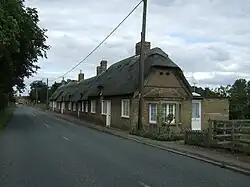 A row of four Grade II listed 18th century rough cast, thatched cottages stand by the roadside. One is detached, the remainder are terraced.[6] At the northern end of the hamlet are four pairs of late 19th century semi-detached estate cottages having yellow brickwork with red brick dressings.[7]