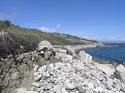 Little Beach is a small secluded beach on the eastern side of the Isle of Portland, Dorset, England; part of the Jurassic Coast. It is found at East Weares, below Grove Point, and is found in close proximity of the two Salt Pans.[1] The East Weares area, including Little Beach, has been labelled a Site of Special Scientific Interest (SSSI), largely due to the surrounding scrub and wildlife being of high nature conservation value.[2]