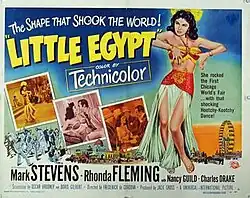 Little Egypt is a 1951 American Technicolor comedy drama film directed by Frederick de Cordova starring Mark Stevens and Rhonda Fleming. It is a highly fictionalized biography of the dancer Little Egypt in the 1890s.[2]