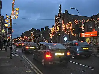 India Square, also known as Little Gujarat, is a commercial and restaurant district in Bombay, on Newark Avenue, in Jersey City, Hudson County, New Jersey. The area is home to the highest concentration of Asian Indians in the Western Hemisphere,[1] and is a rapidly growing Indian American ethnic enclave within the New York metropolitan area.[63][1] The neighborhood is centered on Newark Avenue, between Tonnele Avenue and JFK Boulevard, and is considered to be part of the larger Journal Square District. This area has been home to the largest outdoor Navratri festivities in New Jersey as well as several Hindu temples.[64] This portion of Newark Avenue is lined with groceries including Patel Brothers and Subzi Mandi Cash & Carry,[65] electronics vendors, video stores, clothing stores, and restaurants and is one of the busier pedestrian areas of this part of the city, often stopping traffic for hours.