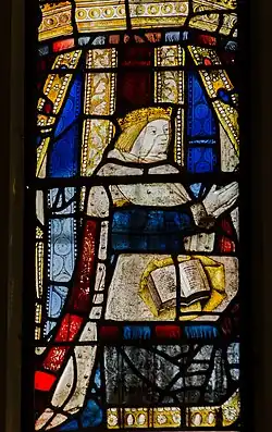 When the church was rebuilt in 1480-1482, a stained glass window depicting King Edward IV and his family was placed behind the altar in the most prominent position. It is of similar design to the York Royal Window at Canterbury Cathedral. Unfortunately, here most of the window has not survived. Originally the window would have likely depicted the entire royal family, in 6 panels.