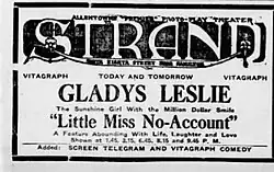 Little Miss No-Account is a 1918 American silent comedy drama film directed by William P. S. Earle and starring Gladys Leslie, Frank O'Connor, William Calhoun, Eulalie Jensen, and Wes Jenkins. It is based on the story The Reflection of Scarlet by Edward P. Smaney. The film was released by Vitagraph Company of America on April 13, 1918.[1][2][3]
