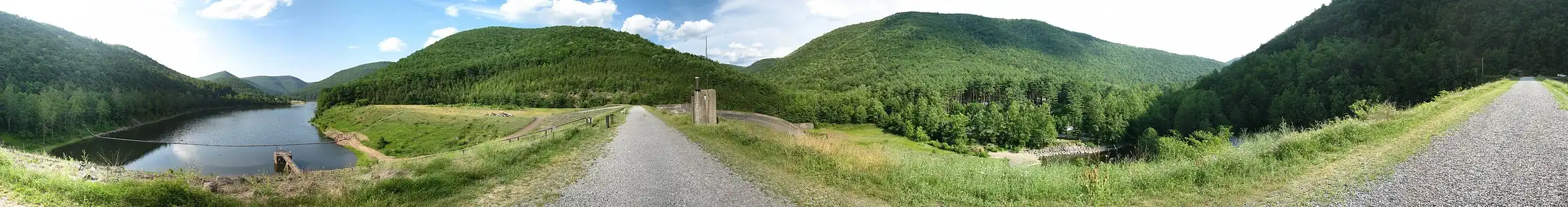 Hiking and cross country skiing can be enjoyed on several trails in the park and surrounding Tiadaghton State Forest, including the 5 miles (8.0 km) Lakeshore trail around the lake, where cross country skiing is available in winter. Part of the Pennsylvania Mid State Trail, which is 261 miles (420 km) long, runs through the park just south of the dam.[3]