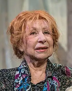 Akhedzhakova is a critic of contemporary Russian politics. She has protested the law that prohibits adoption of Russian children by US citizens, the persecution of Mikhail Khodorkovsky and the incarceration of Vasily Aleksanyan.[10] Together with Eldar Ryazanov, Yuri Shevchuk, Andrey Makarevich, Andrei Konchalovsky and others, she has expressed opposition to Russia's policy toward Ukraine. Following the shootdown of Malaysia Airlines Flight 17, she publicly read a poem by Andrey Orlov, Requiem for MH17, where he apologized as a Russian for the incident. In 2013, Akhedzhakova received a prize from the Moscow Helsinki Group for "the protection of human rights by means of culture and arts".[13] She spoke out in opposition to the 2022 Russian invasion of Ukraine.[14]