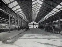 In the 2000s, plans were unveiled for the transformation of the station into a Transport Interchange, which would involve the demolition of the disused part of the frontage and the introduction of new passenger facilities. Following the provision of funding, reconstruction began in 2013 and the £5.2 million scheme was completed in the summer of 2014.[2] The work included a 130-space car park (on the site of the former platforms 4 and 5), a glazed concourse, a bus interchange, new taxi rank, and a shop/cafe. There are also a new entrance and improvements to the platforms.