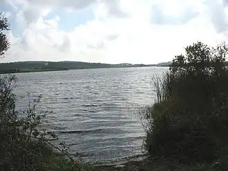 Llyn Llywenan (Welsh for 'Yew tree lake')[1] is a lake in western Anglesey, Wales found just over 1 kilometre (0.6 mi) north of the village of Bodedern and 9 kilometres (5.6 mi) east of the town of Holyhead. At a maximum length of 1.1 kilometres (0.7 mi) and breadth of 0.4 kilometres (0.2 mi) it has a surface area of only 0.4 square kilometres (0.2 sq mi). This makes it the largest natural lake on the island—both Llyn Alaw and Llyn Cefni are larger but are man made.