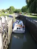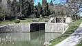 There are 91 working locks on the Canal du Midi along its 240-kilometre (150 mi) course from the Bassin du Thau on the Mediterranean coast to the junction with the Canal lateral a la Garonne in Toulouse. There are a further 13 locks on the 37-kilometre (23 mi) La Nouvelle branch which runs through Narbonne to the Mediterranean at Port-la-Nouvelle.[1] The locks are all under the management of the French navigation authority, Voies navigables de France.