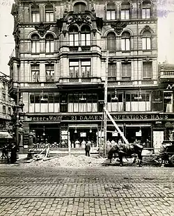The "Loeser & Wolff" building, which juts out over the Landwehr Canal like the prow of a ship, was nicknamed the "Loeser Castle" by the Berlin vernacular at the time; today it is neutrally called the "Loeser & Wolff House".[7]