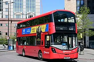 London Buses route 135 is a Transport for London contracted bus route in London, England. Running between Cubitt Town and Moorfields Eye Hospital, it is operated by Stagecoach London.