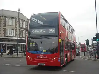 Upon being re-tendered, the route was retained by First London with a new contract commencing on 27 September 2008.[5] When next tendered, the route passed to Stagecoach London's Rainham garage on 29 September 2013.[6][7][8]