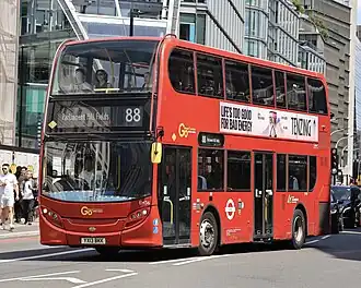 In 1993, route 88 became the first in London to use kneeling buses, with air suspension that lowered at bus stops to give a significantly reduced ground clearance to make access easier.[2] Between 1993 and 1997, a fleet of 12 m (39 ft) Northern Counties Paladin-bodied Volvo B10Bs, which featured branding that styled the service as "The Clapham Omnibus", were operated by London General on route 88. The Paladins were withdrawn in 1997 due to issues caused by their length and replaced with double-decker buses.[3][4][5]