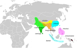 • L. s. bentet Horsfield, 1821 – Malay Peninsula, Greater and Lesser Sundas and Borneo