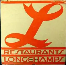 Longchamps was a chain of several upscale restaurants centered in Manhattan that consisted of twenty or more locations at its peak, including the Showboat Restaurant located in the Empire State Building. The chain's first location was opened in 1919.[1] Longchamps restaurants were known for their natty art deco furnishings and decorations by Winold Reiss,[2] and a number of designs for elements of their physical surroundings were drawn up by New York architect Ely Jacques Kahn,[3] originator of a colorful version of art deco architecture.[4]