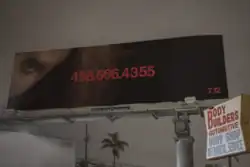 Billboard in Los Angeles containing a phone number to listen to pre-recorded messages