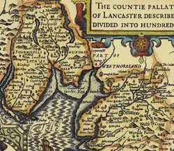 Lonsdale Hundred depicted in John Speed's 1610 map of Lancashire