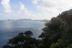 The marine life comprise both subtropical and temperate species due to its location and influence of the southerly flowing East Australian Current (EAC).[1] As a consequence, the waters surrounding Lord Howe Island show rich and unique biodiversity. An extensive barrier coral reef protects a broad sheltered lagoon and sandy beach on the western side of the island, while fringing reef occurs immediately offshore of the beaches on the eastern side.