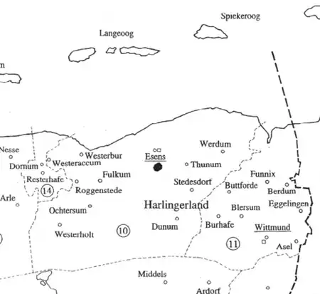 - ^ Munske, Horst Haider; Århammar, Nils; Faltings, Volker F.; Hoekstra, Jarich F.; Vries, Oebele; Walker, Alastair G. H.; Wilts, Ommo (2013-02-06). Handbuch des Friesischen / Handbook of Frisian Studies (in German). Walter de Gruyter. p. 432. ISBN 978-3-11-094692-5.