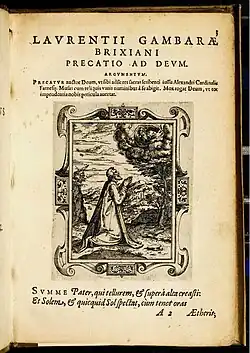 Laurentii Gambarae Brixiani. Precatio ad Deum, 3rd page of Rerum Sacrarum Liber, Antwerp, ex oficina Christophori Plantini, Antwerp, 1577.