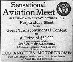 - ^ "AERO CLUB INVITES THE PUBLIC TO BIG PICNIC". Los Angeles Herald. May 20, 1910. Retrieved August 11, 2012.