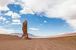 One of the "Monks of the Pacana", huge rock formations created by the erosion of the wind, near the Salar de Aguas Calientes