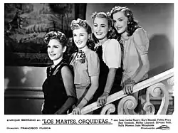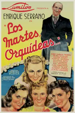 Los martes, orquídeas (On Tuesdays, Orchids) is a 1941 Argentine black and white comedy film of the Golden Age directed by Francisco Múgica and starring Mirtha Legrand, Enrique Serrano, Juan Carlos Thorry and Nuri Montsé. It won the Argentine Best Picture award for 1941. It was remade as the Hollywood classic You Were Never Lovelier (1942), starring Fred Astaire and Rita Hayworth.[2][3]