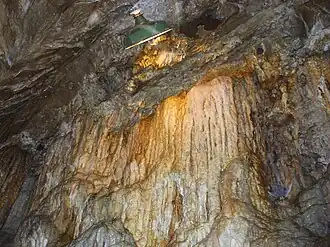 Lost River Caverns is a natural limestone cavern located on the east side of Hellertown, Pennsylvania, United States, and consisting of five chambers. The caverns were formed by the karstification or dissolving of the limestone by water. In the past the caverns have been called Rentzheimer's Cave and Lost Cave.[1] The "Lost River", so named because the source and mouth of the river have not yet been discovered, flows through it. The temperature in the cave is consistently close to 52 °F (11 °C). There is a gift shop and a museum before the entrance.