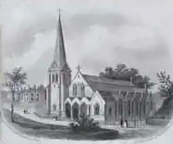 St James Church Bath Road Designed by M. H. Taylor and built in 1870–71.The hexagonal tower and spire were removed for safety in 1896. It was closed after congregations shrank and in the 1950s it was demolished. A health clinic is now located on the site.[3]